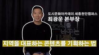 지역을 대표하는 콘텐츠를 기획하는 법 | 도시문화아카데미 세종천안캠퍼스 최광운 본부장